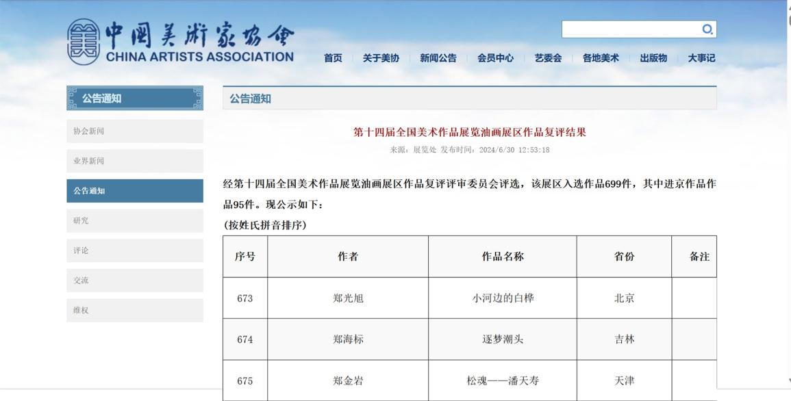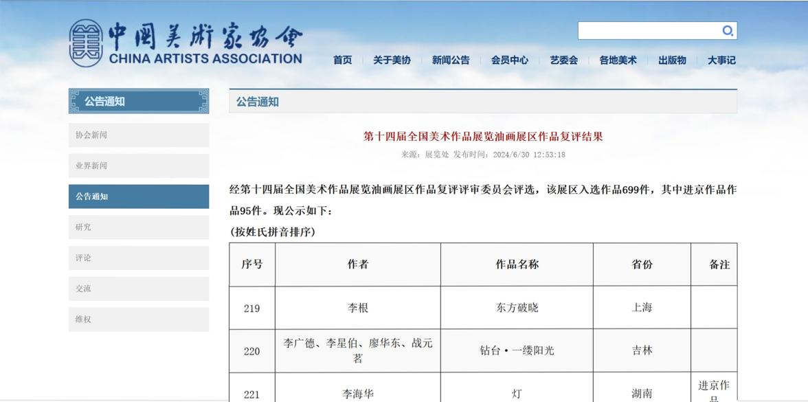 近日,中国美术家协会官网公布了第十四届全国美术作品展览作品复评的结果。做爱影片