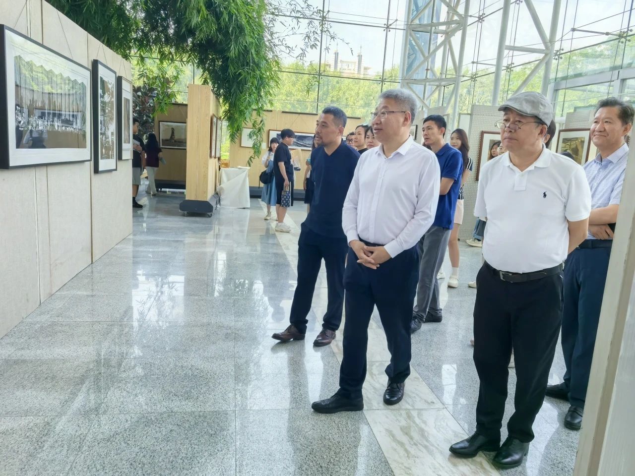 院长郭春方、党委书记冯彦杰,图书馆党委书记宁德宽共同见证作品展启动。
