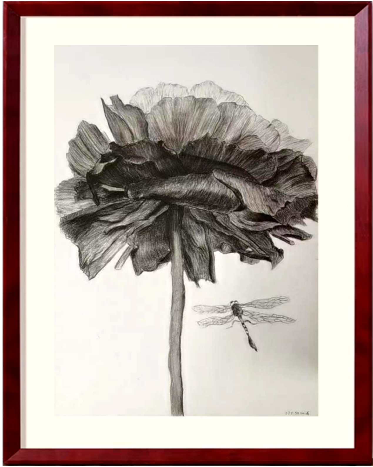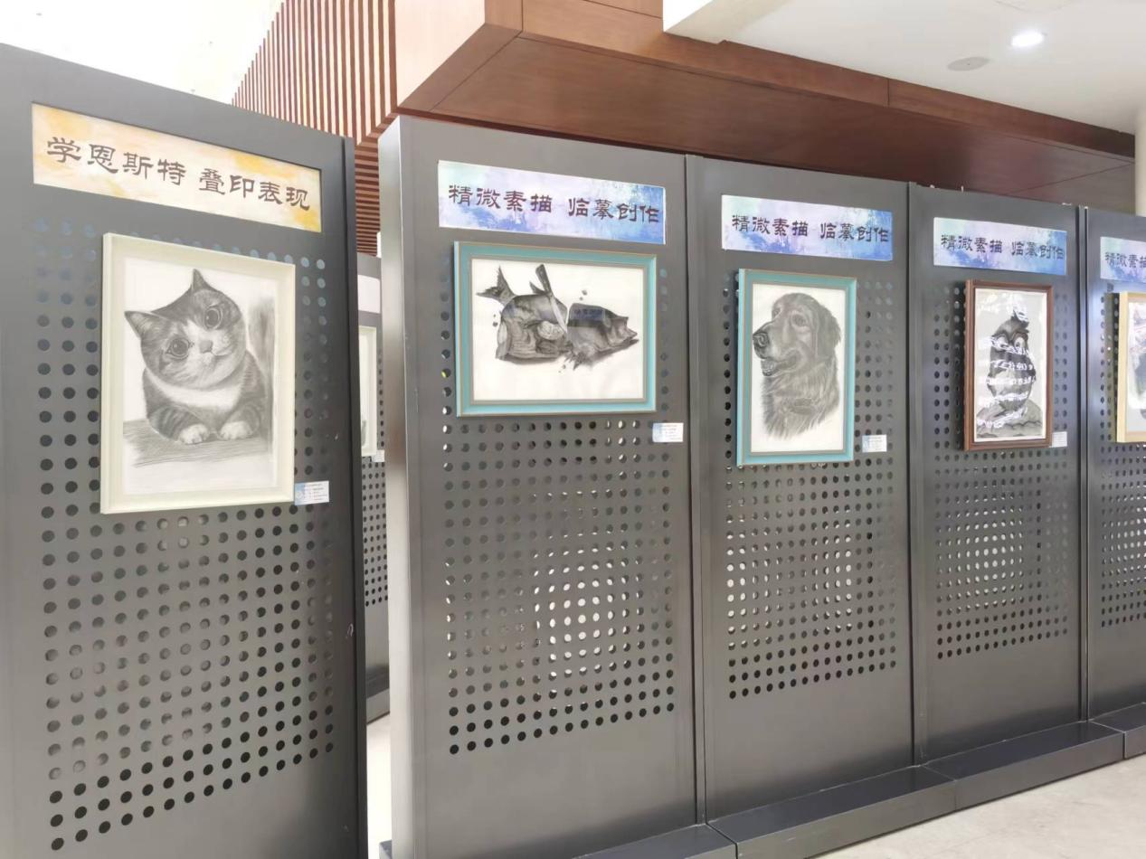 画展上,2023级唐敖庆理科试验班物理学基地魏文波同学的作品《猫的凝视》吸引了众多观众驻足观看。他感言:“这门课让我对素描作品有了基本的认知,知道了如何制作素描作品,从线稿到铺调子,再到擦蹭和补细节,通过亲手完成一幅对于艺术门外汉来说较为复杂的作品,我既体会到了绘画艺术的魅力,也一定程度上削减了对艺术创作的畏惧。现在,再去看大师的素描作品,我能切身体会到大师技艺的高超和艺术巧思,也有兴趣亲手绘下生活中的所见。我认为亲手创造事物是有魔力的,它令人着迷,让人能感受到自己的价值。作为物理学专业的学生,创造殊为不易,这幅作品也算是稍稍弥补了这种空缺吧,我认为我的时间用得很值。感谢老师们引领我们走过了一段难忘的艺术之旅。”