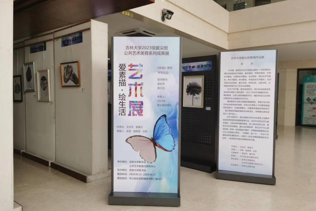 2024年6月22日至27日,拔尖基地学生首届“素描”作品展在鼎新楼图书馆二楼大厅成功举办。本次展览由教务处和公共艺术教育与研究中心共同主办,展示了我校拔尖基地学生在艺术美育方面的丰硕成果。