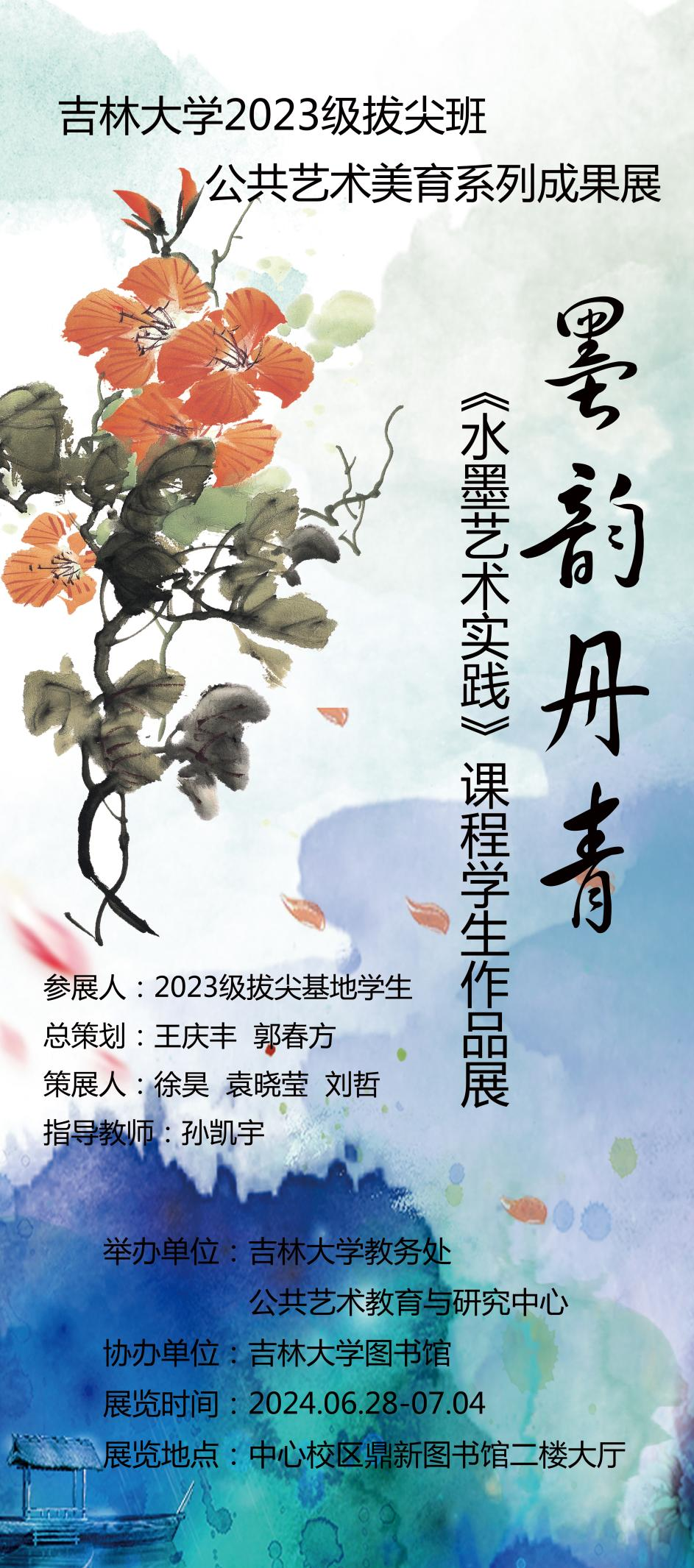 2024年6月28日至7月4日,由教务处和公共艺术教育与研究中心共同主办的拔尖基地学生《水墨艺术实践》作品展在鼎新楼图书馆成功举办,展示了我校拔尖基地学生在艺术美育方面的丰硕成果。