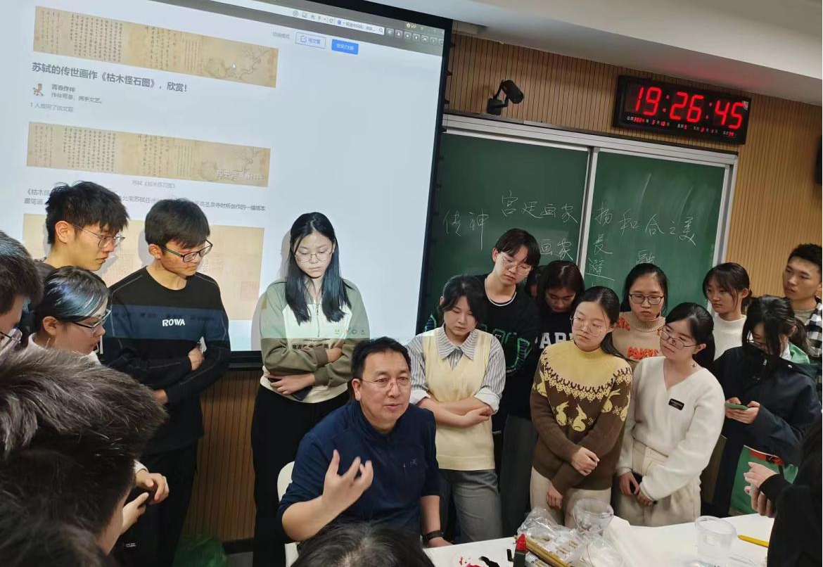 孙老师还强调:“一滴水何以不干,唯有流入江海。我们的水墨艺术要想得到弘扬,首先需要更多人读懂中国画。光靠理论是不够的,还要在实践中去体会认知。这些非艺术专业的2023级拔尖班学生,通过一学期的水墨艺术实践课程,不仅提升了绘画技能,更学会了观察生活、思考生活和表达生活。”