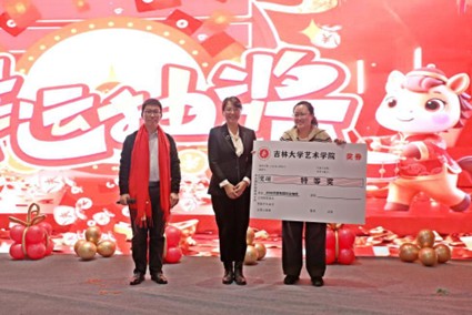 学院院长郭春方教授登台致辞,寄语全体教职工以艺术为桥梁、以创新为动力,坚守教 书育人初心,勇攀艺术创作高峰,携手书写学院高质量发展的崭新篇章。致辞尾声,郭院长 还为大家送上特别新年礼物——由其设计团队打造的马年春晚吉祥物“骐骐”亲笔签名版,这份承载着心意的专属礼品,为现场增添了浓浓的暖意。