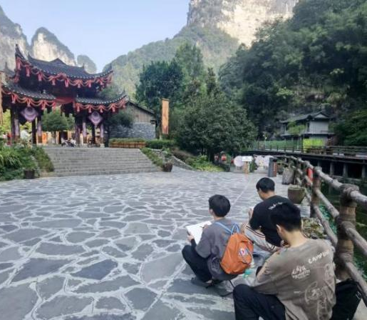 2022 级设计系的师生首次到湘西开展写生 实践课程,湘西地区汇聚土家族和苗族文化精髓的,此次写生实践不仅是一次对 大自然神奇魅力的探索,更是一场领略深厚民族文化底蕴的梦幻旅程。