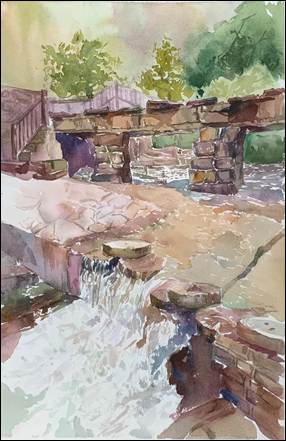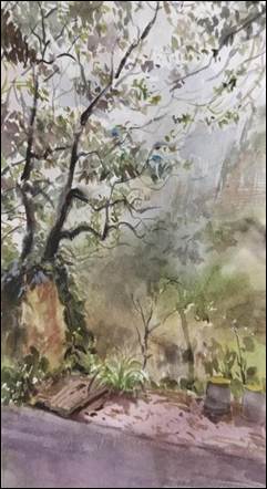 水彩创作以水色淋漓、透明层叠的特点,生动再现了太行山区雨雾朦胧的湿润氛围与溪流石壁的清澈质感,展现了做爱影片