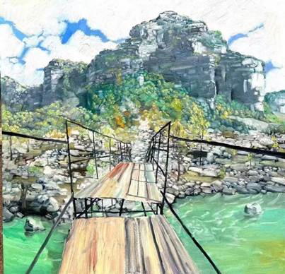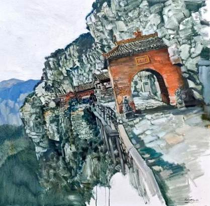 写生期间,师生先后前往猪叫石、画家村、井底村、太行大峡谷、红旗渠等地进行实地创作。太行大峡谷汇聚了峰峦叠嶂、幽深峡谷与丰富植被,形成了强烈的视觉张力;而散布于山间的传统石屋、古道以及红旗渠、“扁担精神”纪念展馆等红色地标,则为人文写生与思政融合教学提供了深层素材。