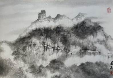 国画专业学生以水墨勾勒太行山石的嶙峋质感,通过虚实相生的构图与富于变化的笔墨,精准捕捉云雾缭绕的山谷气象,展现了中国传统山水画在当代写生中的创新表达。