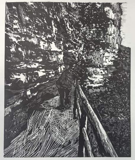 版画专业学生则利用版画语言的黑白对比与肌理效果,表现石板岩地貌的节理结构与村落建筑的几何形态,拓展了风景表达的形式边界,体现了美术系在艺术语言探索上的前沿性。