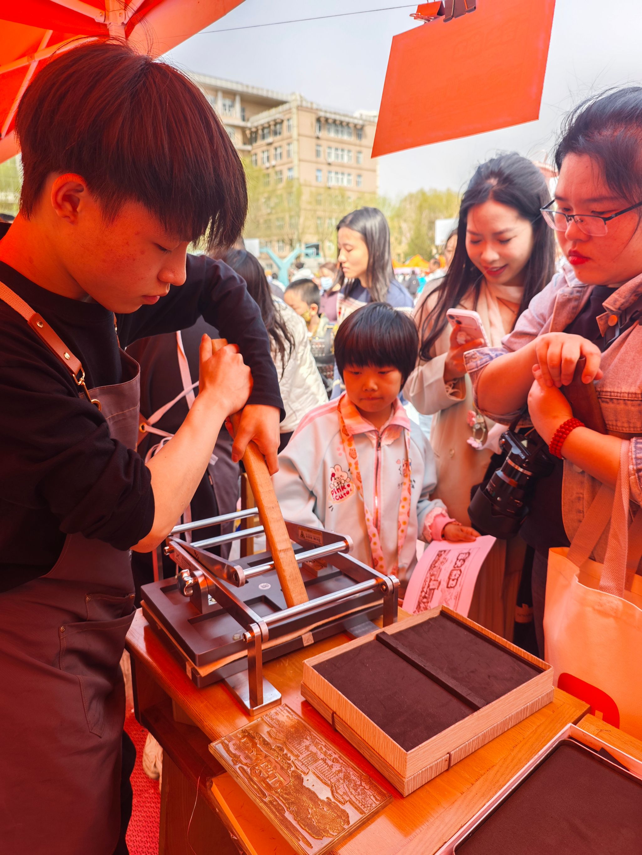 围绕版画艺术与传统工艺创新,设置原创印章体验、漆扇制作及作品展示等环节。其中,原创印章涵盖生肖、人格类型及校园文化元素,增强了活动的互动性与参与感;漆扇体验融入传统漆艺工艺,使参与师生在实践中感受非遗技艺魅力,现场反响良好。