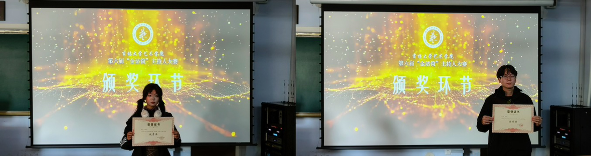 评委和观众根据参赛选手的演讲内容、语言表达、形象气质及舞台效果等多个方面进行综合考量,评选出一、二、三等奖各一人,优秀奖两人。下面让我们一起来回顾各位参赛选手在本次“金话筒”主持人大赛中的的精彩表现。